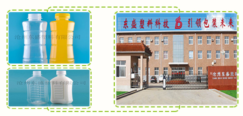 滄州東盛塑料有限公司主營:塑料瓶,飲料瓶,塑料瓶坯,塑料蓋,,洗手液瓶,酒精瓶,代餐粉瓶,奶昔瓶,透明瓶,耐高溫塑料瓶,熱灌裝飲料瓶,果汁塑料瓶,高溫瓶蓋,透明飲料瓶,乳飲料瓶等。公司位于滄州西大官廳工業區,毗鄰京滬高速和滄保公路,企業法人王治川,經營性質為有限責任公司。自八八年開始專業從事塑料包裝容器制造,產品廣泛應用于食品、飲料、化工等領域。公司占地面積30000平方米,組織機構健全,配有專業的生產銷售和管理人員,從原材料到產成品擁有一套完善的檢測檢驗體系。